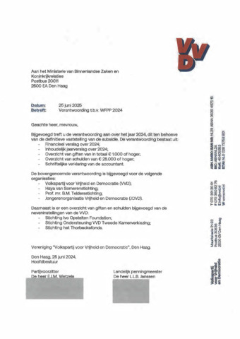 VVD: Jaarverslag 2024 zoals aangeleverd bij het Ministerie van BZK