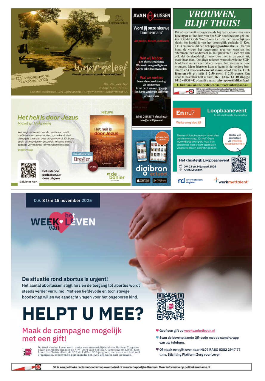 SGP: In het Spoor Reformatorisch Dagblad advertentie 'Vrouwen blijf thuis!'