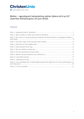 ChristenUnie: 52e Partijcongres, Verzameldocument moties met preadviezen
