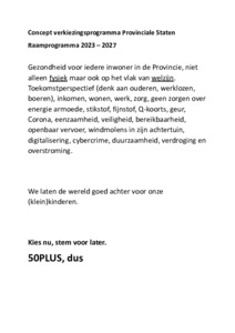 VijftigPLUS (2023) Concept Raamprogramma Provinciale Staten. [Verkiezingsprogramma's]