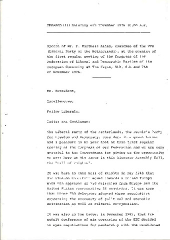 VVD: Openingsrede congres ELDR door Korthals Altes (1976)